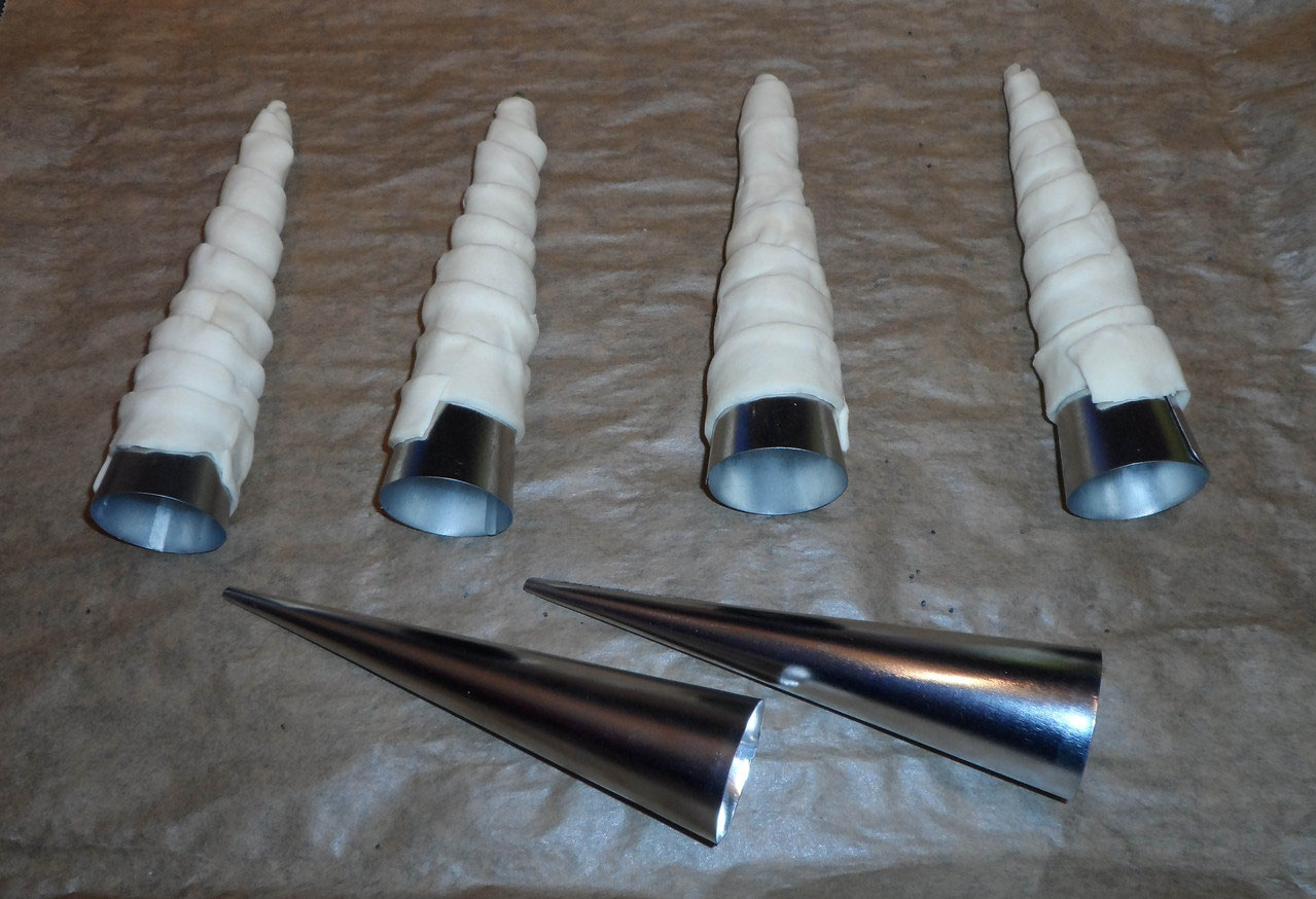 Nun die Teigstreifen mit dem Ei bestreichen und auf die Schillerlocken- oder Schaumrollenformen spiralenförmig aufwickeln. Dabei darauf achten dass die Teigkanten. Das Hörnchen sollte man dann mit Schlagsahne oder.